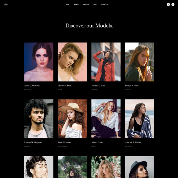 Show models list in clean and well structure layout with images, names and Job title.