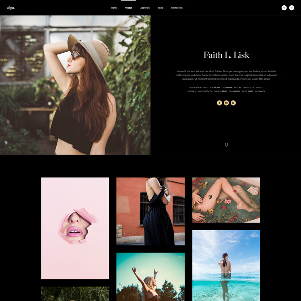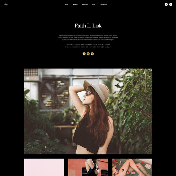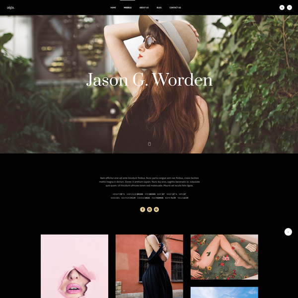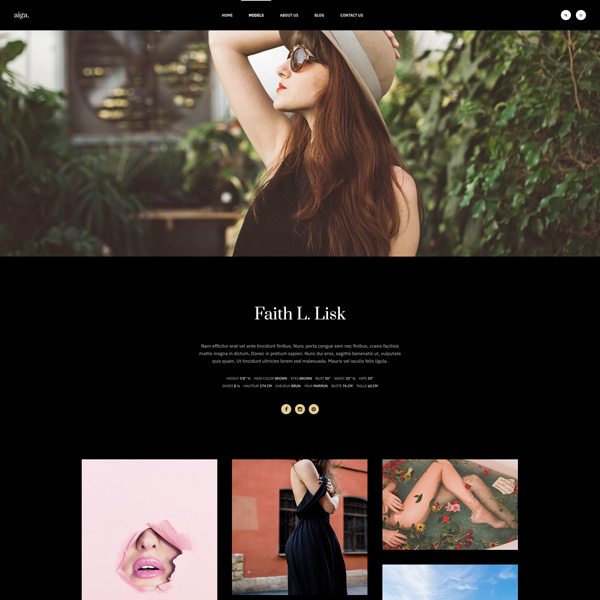 Model detail page with center content section, featured image and additional images.